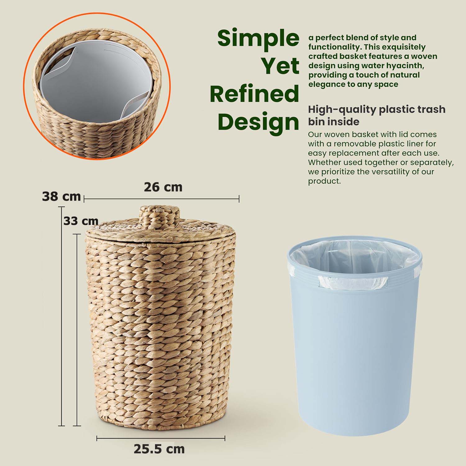 Sọt rác lục bình có lót thùng nhựa ở trong, sọt để đồ đa năng, đồ để văn phòng tiện dụng ️️ THÔNG TIN SẢN PHẨM: