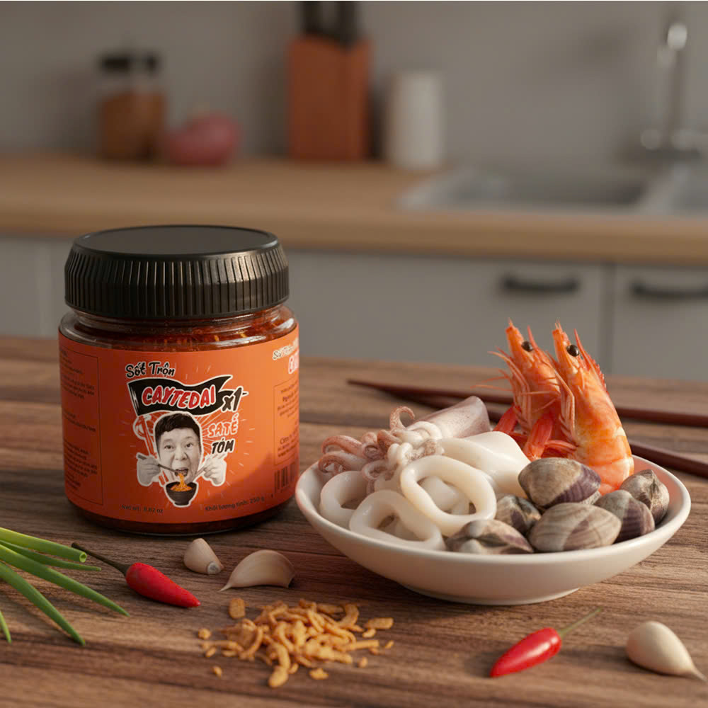 Sốt Trộn Sa Tế Tôm CayTeDai X1- Chuẩn Vị Đậm Đà Trộn Gì Cũng Ngon Lâm Vlog Food giới thiệu Sốt Trộn Sa Tế Tôm CayTeDai X1 – cay ngon chuẩn vị, ăn liền món