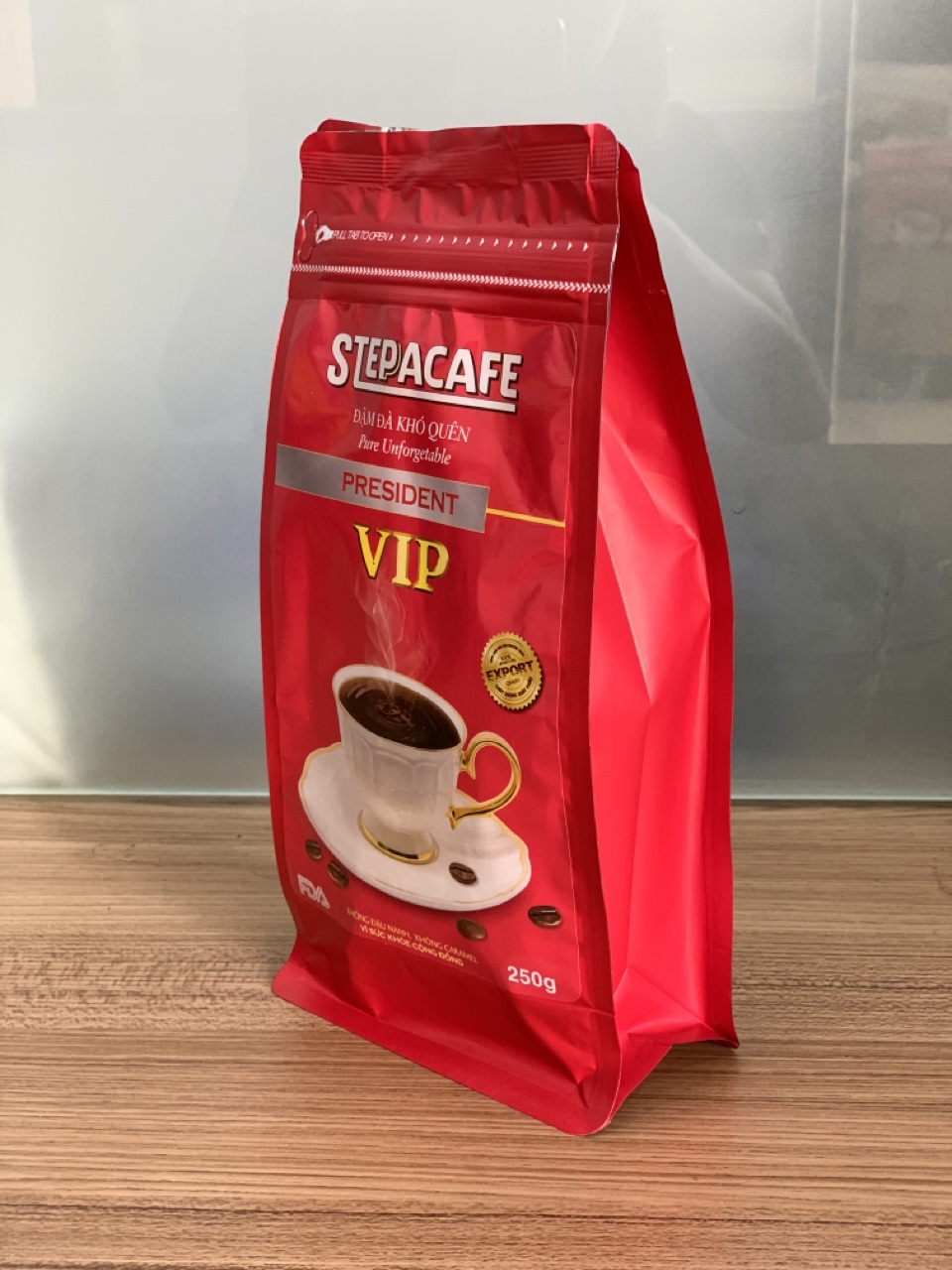 Cà Phê Rang Xay VIP 500g - STEPPACAFE Cà Phê VIP 100% nguyên chất được tuyển chọn từ hạt Moka trên cao nguyên Đà Lạt cao 1600m. STEPPACAFE chế tác với công nghệ rang bằng đèn