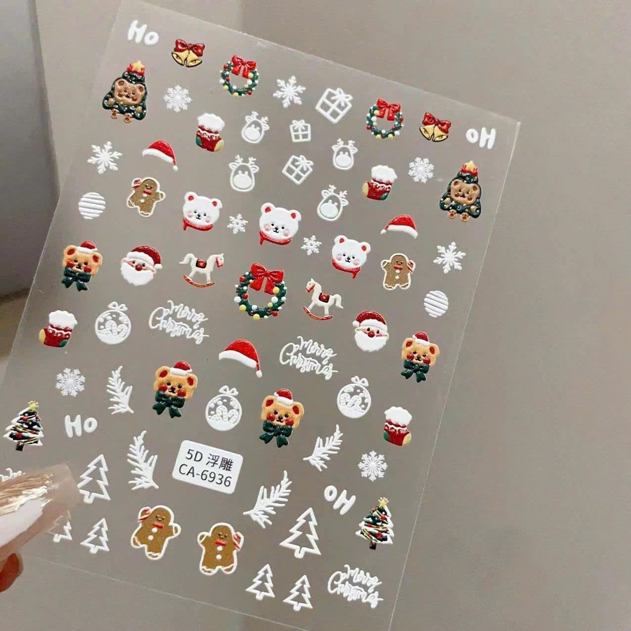 ✨Sticker Móng Tay Dập Nổi Dán Làm Nail Hình Giáng Sinh Vui Vẻ, Ông Già Noel, Dễ Thương, Mỏng Trong Suốt, Lưng Keo, Trang Trí Móng Tay Nghệ Thuật - Xmas
