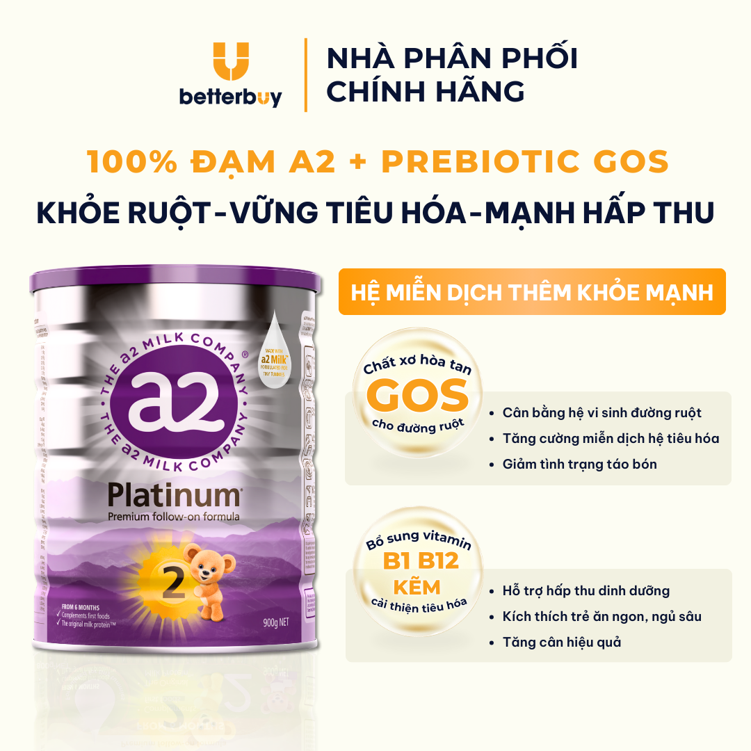 Sữa a2 Milk a2 Platinum Số 2 Lon 900gGiới thiệu chungĐẠI LÝ PHÂN PHỐI CHÍNH HÃNG A2 MILK - ĐẦY ĐỦ QR VÀ TEM PHỤ, CAM KẾT 1 ĐỔI 1 NẾU PHÁT HIỆN HÀNG GIẢ- - - - - -a2 Platinum Premium - Sữa công thức c...