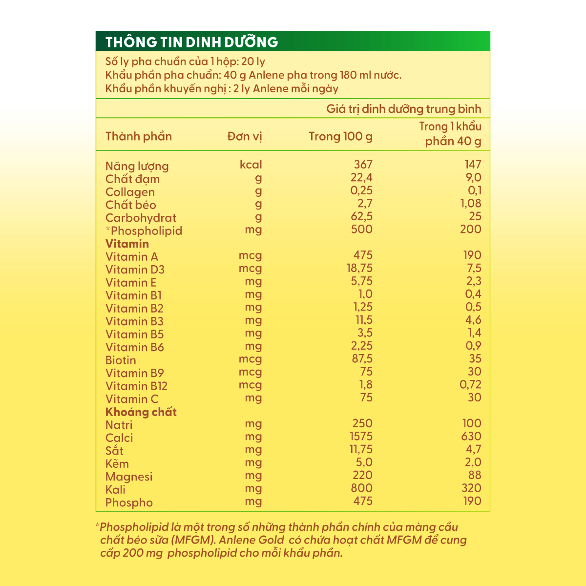 ANLENE GOLD LÀ SẢN PHẨM SỮA CHỨA HỆ DƯỠNG CHẤT MOVEPROCung cấp dinh dưỡng tăng cường với hoạt chất MFGM được KIỂM NGHIỆM LÂM SÀNG, giúp cơ thể thêm linh hoạt và Vitamin B tiếp thêm năng lượng.