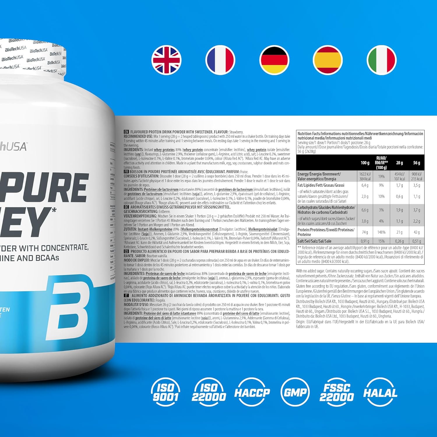- 100% Pure Whey là sản phẩm đến từ BioTechUSA - một thương hiệu của Châu Âu chuyên cung cấp các thực phẩm bổ sung và dinh dưỡng thể hình. Không chỉ nhận được sự yêu thích tại quê nhà, các sản phẩm của BioTechUSA hiện đang có mặt tại hơn 100 quốc gia trên toàn thế giới và được nhiều khách hàng tin tưởng lựa chọn.