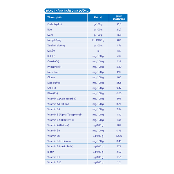 Thay thế bữa ăn phụ hoặc bổ sung cho chế độ ăn hàng ngày thiếu vi chất dinh dưỡng Giúp phát triển trí não và thị giác Giúp phát triển chiều cao Tăng cường sức