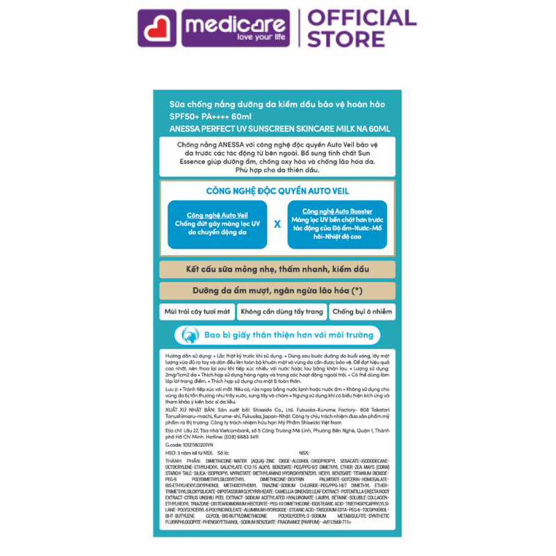 Sữa chống nắng kiềm dầu ANESSA Gold Milk SPF50+ PA++++ bán chạy số 1 Nhật Bản. Phiên bản mới với bao bì giấy thân thiện hơn với môi trường. - Công nghệ độc quyền Auto