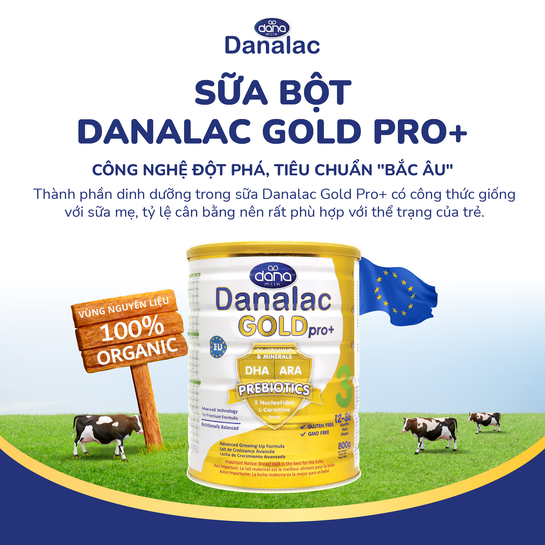 DANALAC GOLD pro+ là nhãn hiệu sữa bột danh tiếng được phát triển bởi tập đoàn Dana Dairy (Thụy Sĩ) với hơn 80 năm kinh nghiệm trong lĩnh vực sản xuất các sản phẩm dinh dưỡng cho trẻ sơ sinh và trẻ nhỏ. THÔNG TIN SẢN PHẨM