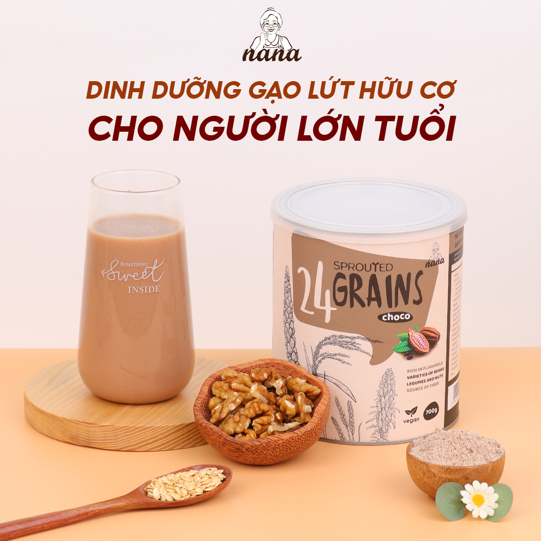 - 24 loại hạt "siêu thực phẩm": nhóm ngũ cốc - nhóm hạt giàu chất béo tốt - nhóm giàu chất xơ hòa tan, vitamin & khoáng chất - nhóm hạt giàu đạm hoàn chỉnh dễ tiêu hóa. DINH DƯỠNG TỪ GẠO LỨT HỮU CƠ VỚI CÔNG NGHỆ NẢY MẦM Hạt nảy mầm thương mại được chế biến trong môi trường vô trùng và thường được sấy khô hoặc khử nước trước khi đóng gói để ngăn ngừa nấm mốc cũng như nguy cơ bệnh tật do thực phẩm, vì khó tạo ra một môi trường vô trùng tại nhà. 24Grains giàu dinh dưỡng & các loại vitamin khoáng chất từ hạt gạo lứt hữu cơ nảy mầm. Trong quá trình nảy mầm, hàm lượng các vitamin, khoáng chất & đạm đều tăng lên rõ rệt. Các dưỡng chất quan trọng như GABA, lysin, Vitamin E, magie, chất xơ, niacin, B1, B6 & B12 cũng được tìm thấy trong hạt nảy mầm với giá trị đặc biệt cao. BỔ SUNG TRỌN VẸN DƯỠNG CHẤT TỰ NHIÊN CHO TRẺ TỪ 3 TUỔI