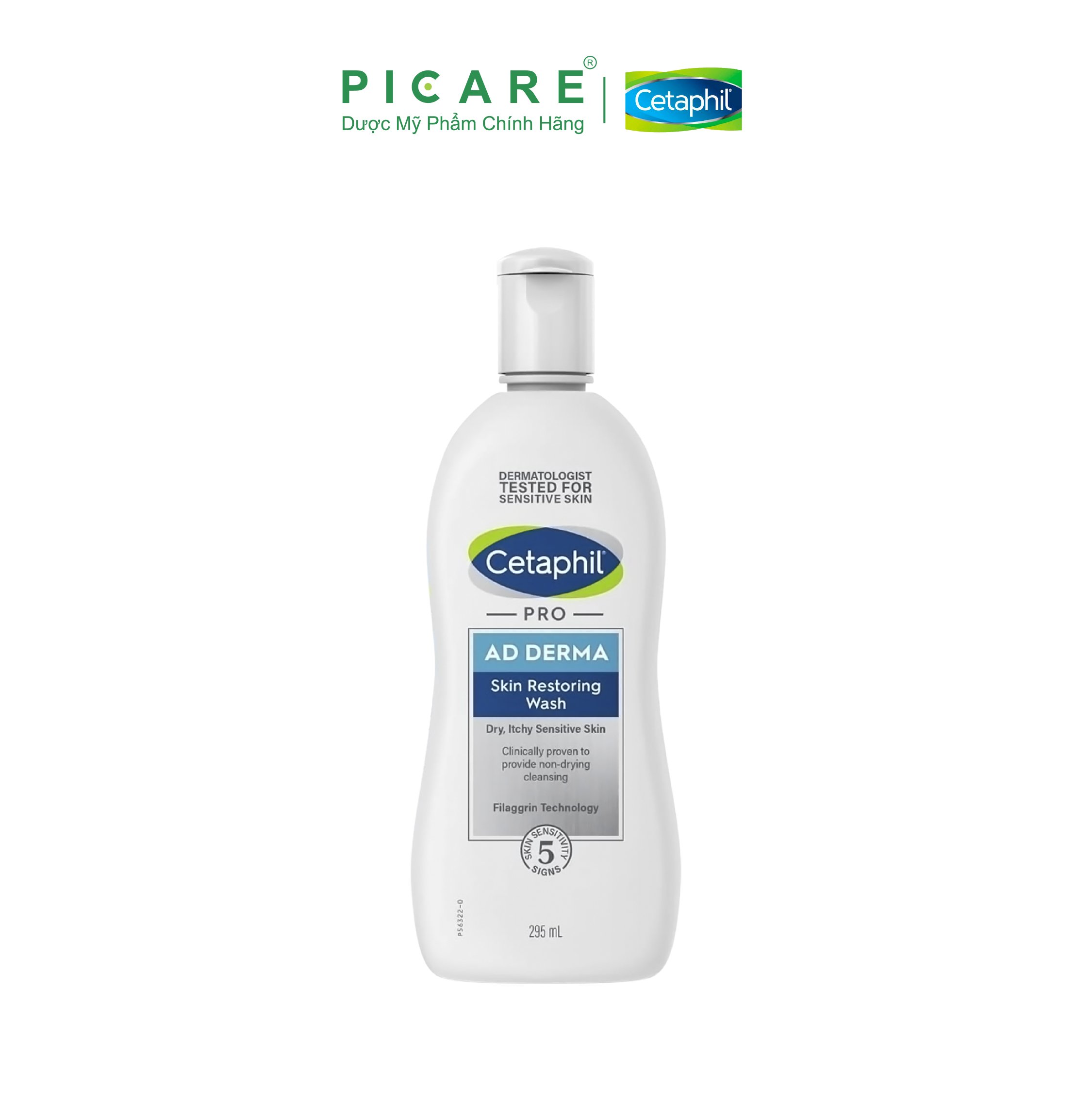 - Tắm sạch nhẹ nhàng, dưỡng ẩm làn da Khởi đầu chu trình chăm sóc da nhạy cảm của bạn với sữa tắm Cetaphil Pro AD Derma Wash, sản phẩm được chứng minh lâm sàng giúp làm sạch làn da nhạy cảm một cách nhẹ nhàng. Kết cấu dạng kem tạo bọt, không chứa chất tẩy xà phòng phù hợp để sử dụng hàng ngày trên cả cơ thể, da mặt và da tay.