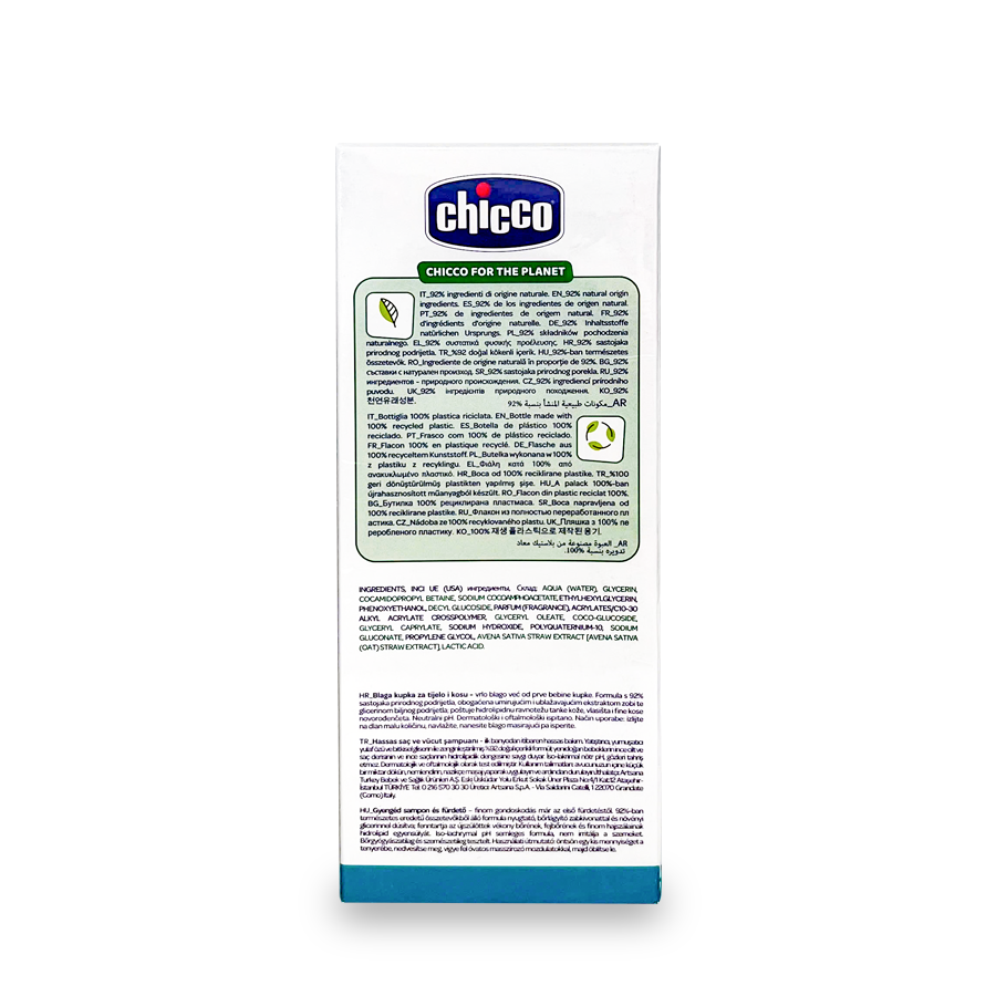 - Sữa tắm gội (2 in 1) Chicco có chiết xuất tự nhiên từ Yến mạch: bổ sung vitamin B, acid amin giúp làm mềm tóc và giữ ẩm cho da. Yến mạch còn chứa các hoạt chất hỗ trợ ngăn ngừa rôm sảy ở bé.