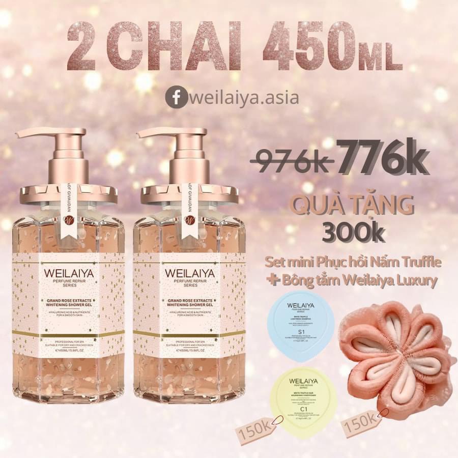 Sữa Tắm Trắng Da Cánh Hoa Hồng Damask Weilaiya Grand Rose Extracts Whitening Shower Gel 450ml