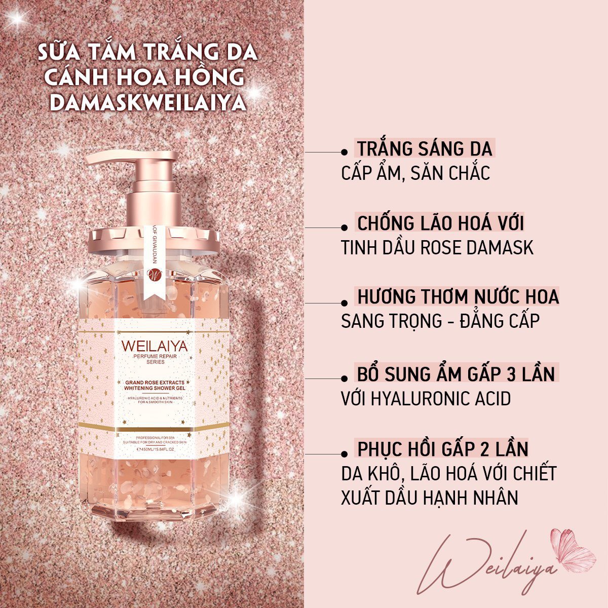 Sữa tắm trắng da cánh hoa hồng Damask Weilaiya Grand Rose Extracts Whitening Shower Gel 450ml