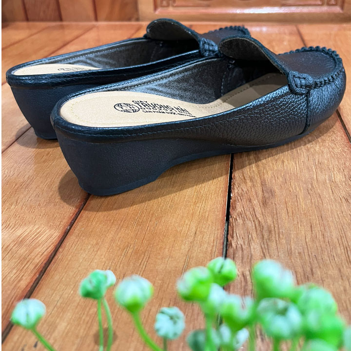 Giày đế xuồng 5cm bigsize hở mũi Trường Hải da bò thật