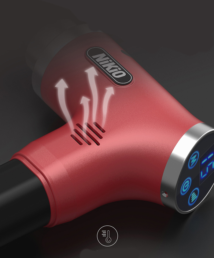 Súng massage gun cầm tay 4 đầu, 6 tốc độ Nhật Bản Nikio NK-170A - Màu đỏ đô - Đánh bay mọi cơn đau nhức mỏi, căng cơ hiệu quả Súng massage gun cầm tay