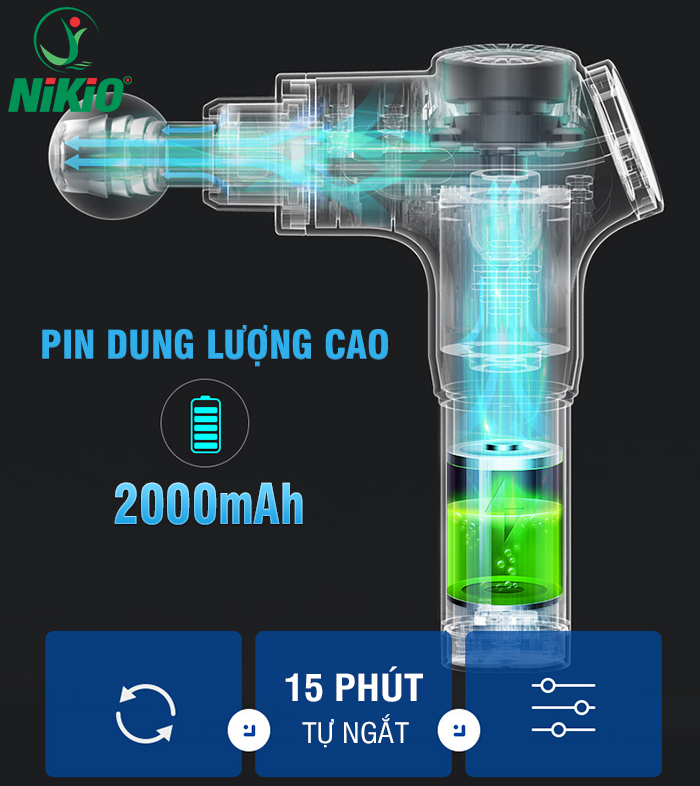Thông số kỹ thuật của súng massage cầm tay Nikio: