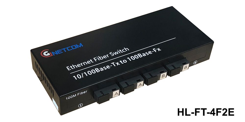 Switch chuyển tiếp quang Gnetcom HL-FT-4F2E | 4 cổng SC + 2 Cổng J45 10/100Mbp