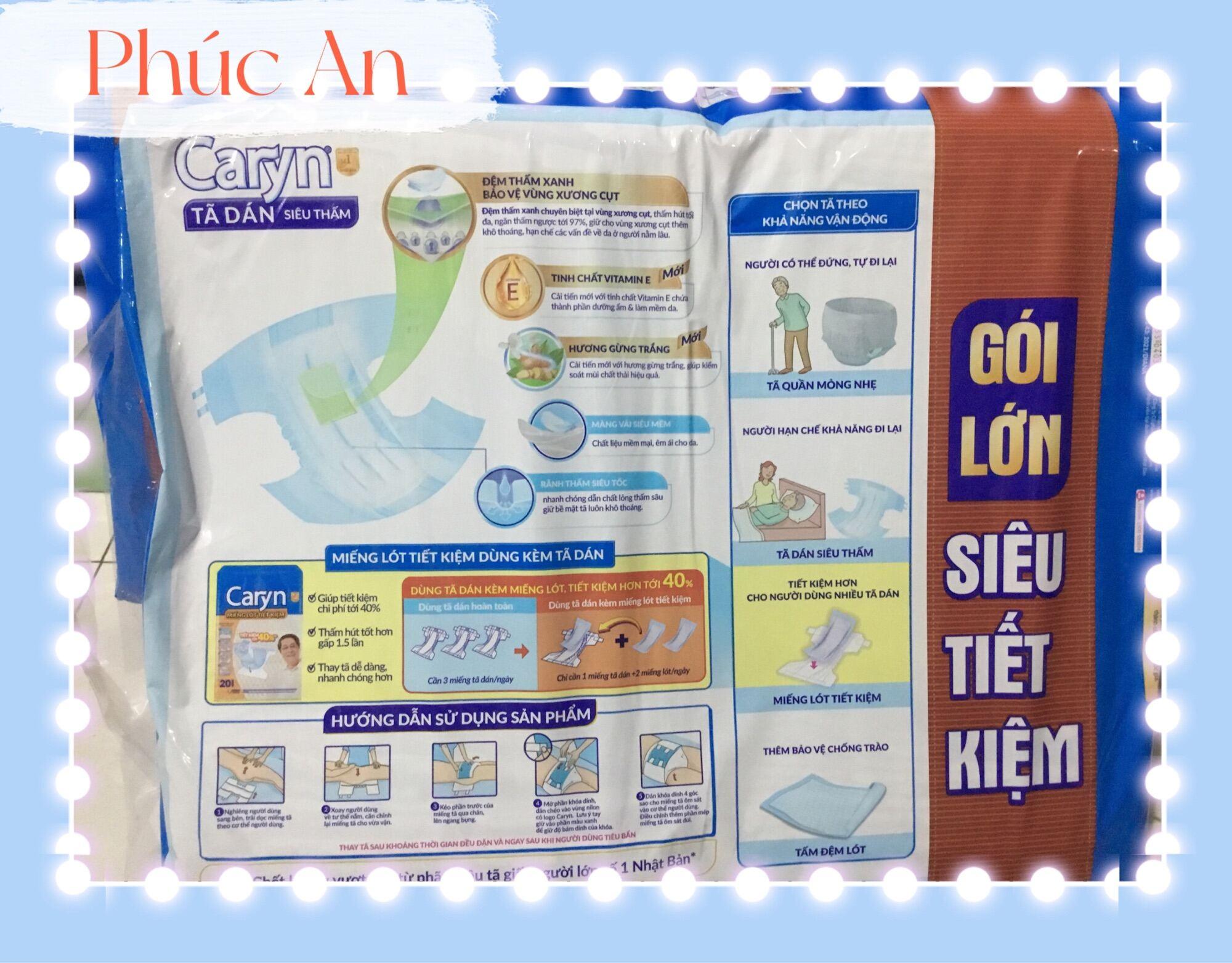 Tã dán người lớn Caryn bỉm dán gói L10 L20 M10 XL10 XL20 Lõi bông cao cấp thấm hút mỏng nhẹ, cho bề mặt luôn khô thoáng   CÔNG DỤNG  - Dành cho người có