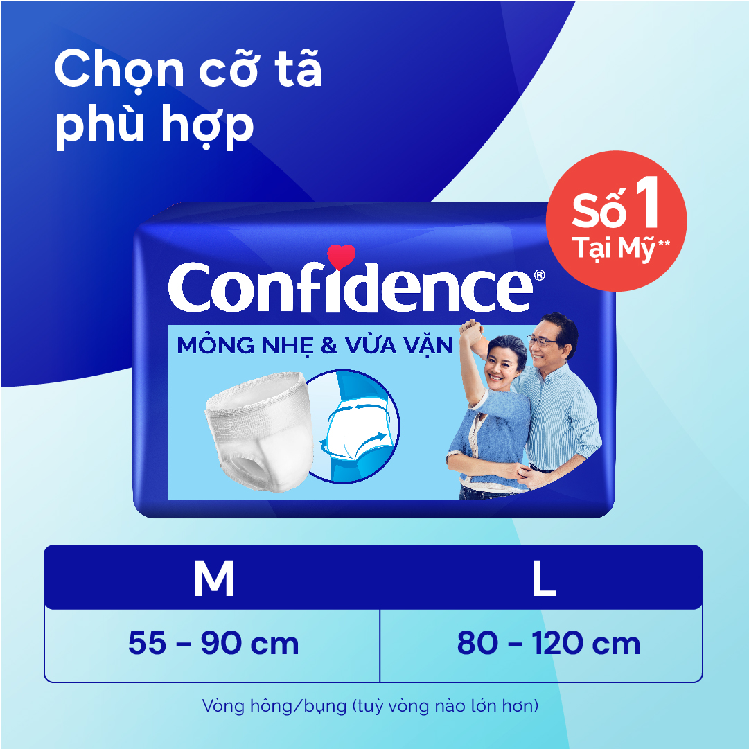 Tã quần người lớn Confidence Slim&Fit mỏng nhẹ vừa vặn size M gói 16+2 miếng Giới thiệu
