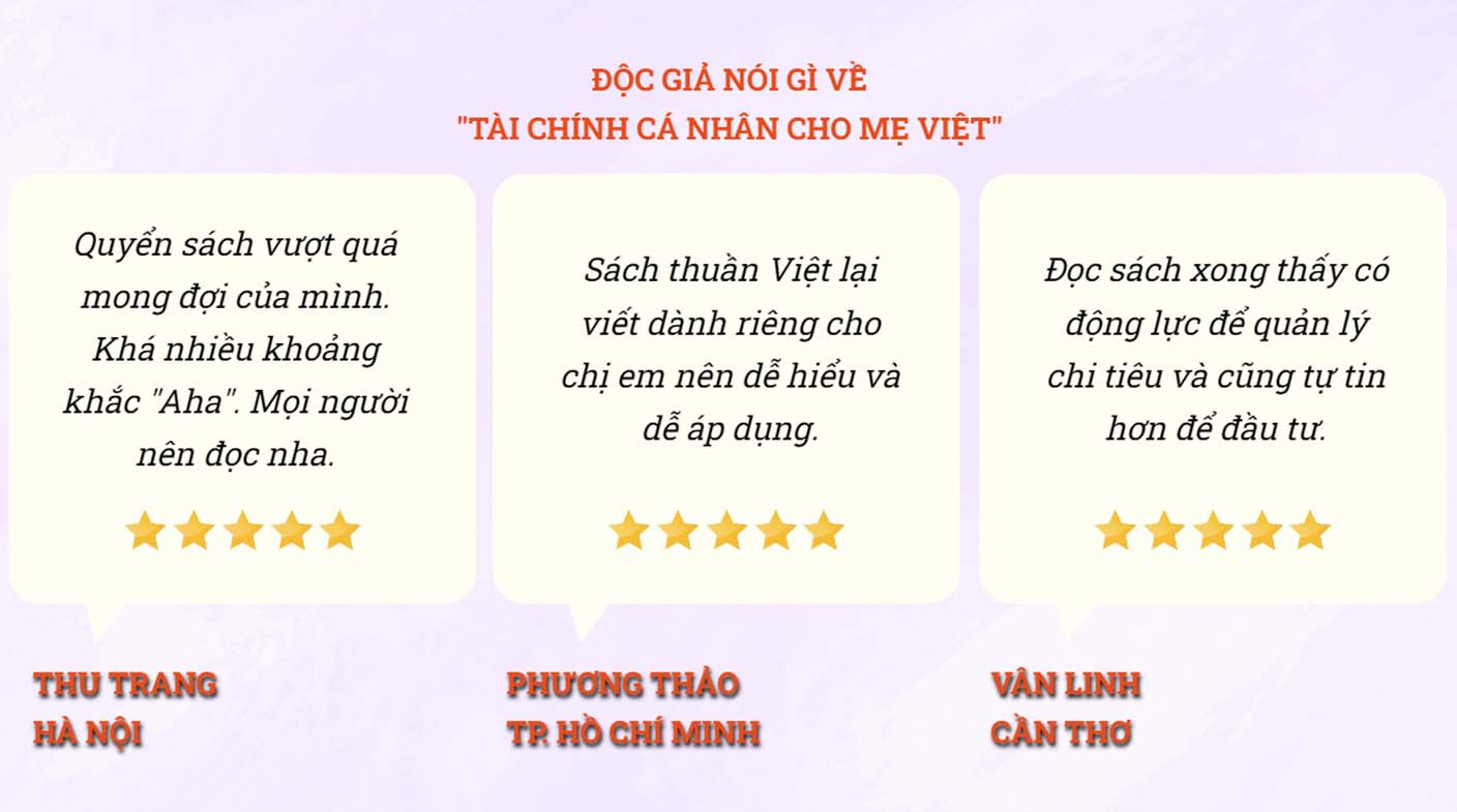 Tài chính cá nhân cho mẹ Việt là quyển sách đầu tay và chứa đựng nhiều tâm huyết của tác giả.