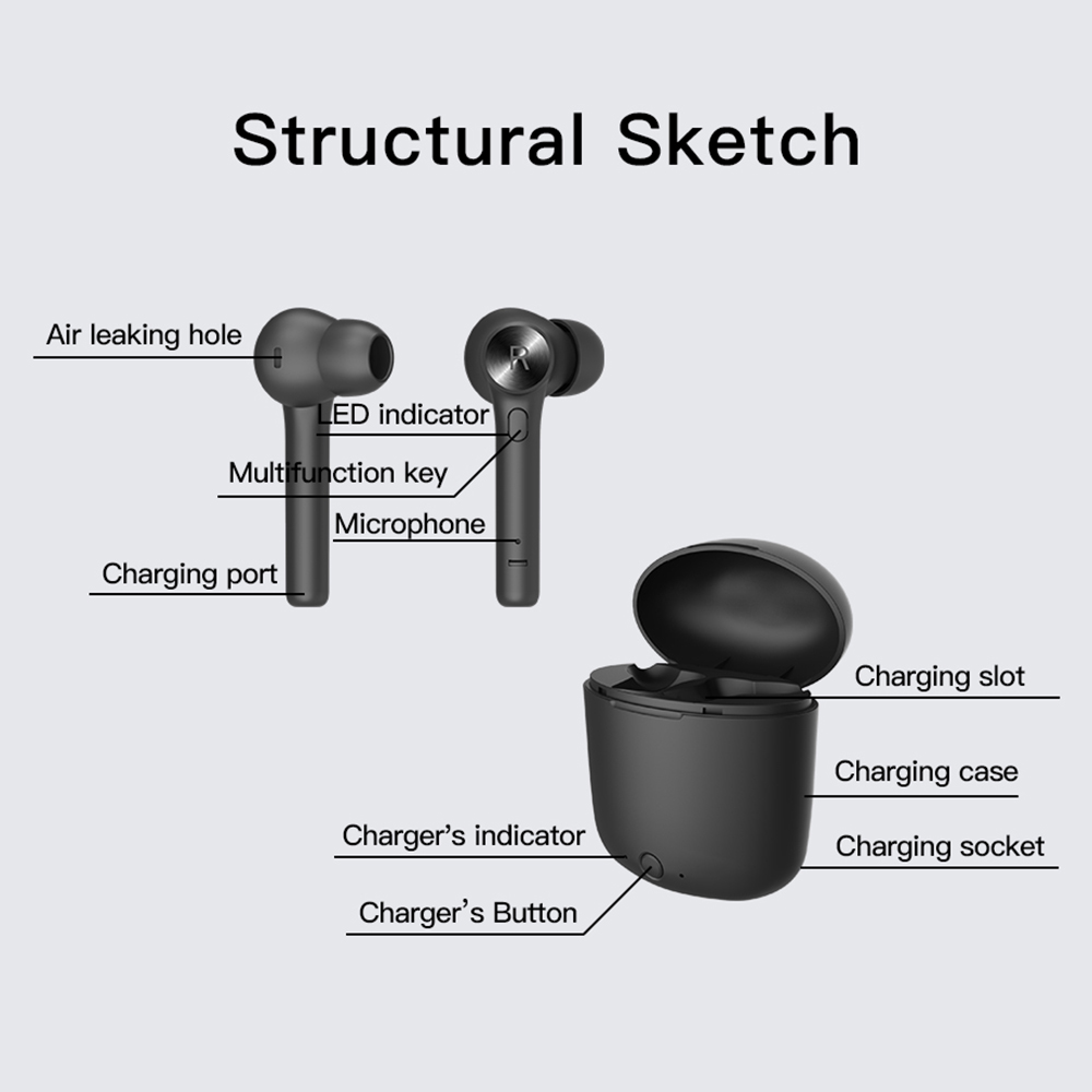 Features: Adopt DSP anti-interference chip and BT5.0 chip, fast and stable transmission, low power consumption. High-quality eight-core 13mm speaker unit, good sound quality, comfortable audio experience. CVC intelligent noise reduction technology can automatically reduct environmental