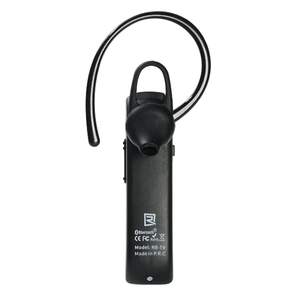 Thương hiệu: Remax Model: RB-T9 Màu sắc: Đen Kích thước (D x R) 6.5 x 2cm Khối lượng: 8g Loại Pin: Polymer Lithium (công nghẹ mới nhất hiẹn nay) Dung lượng Pin: 100mah Thời gian