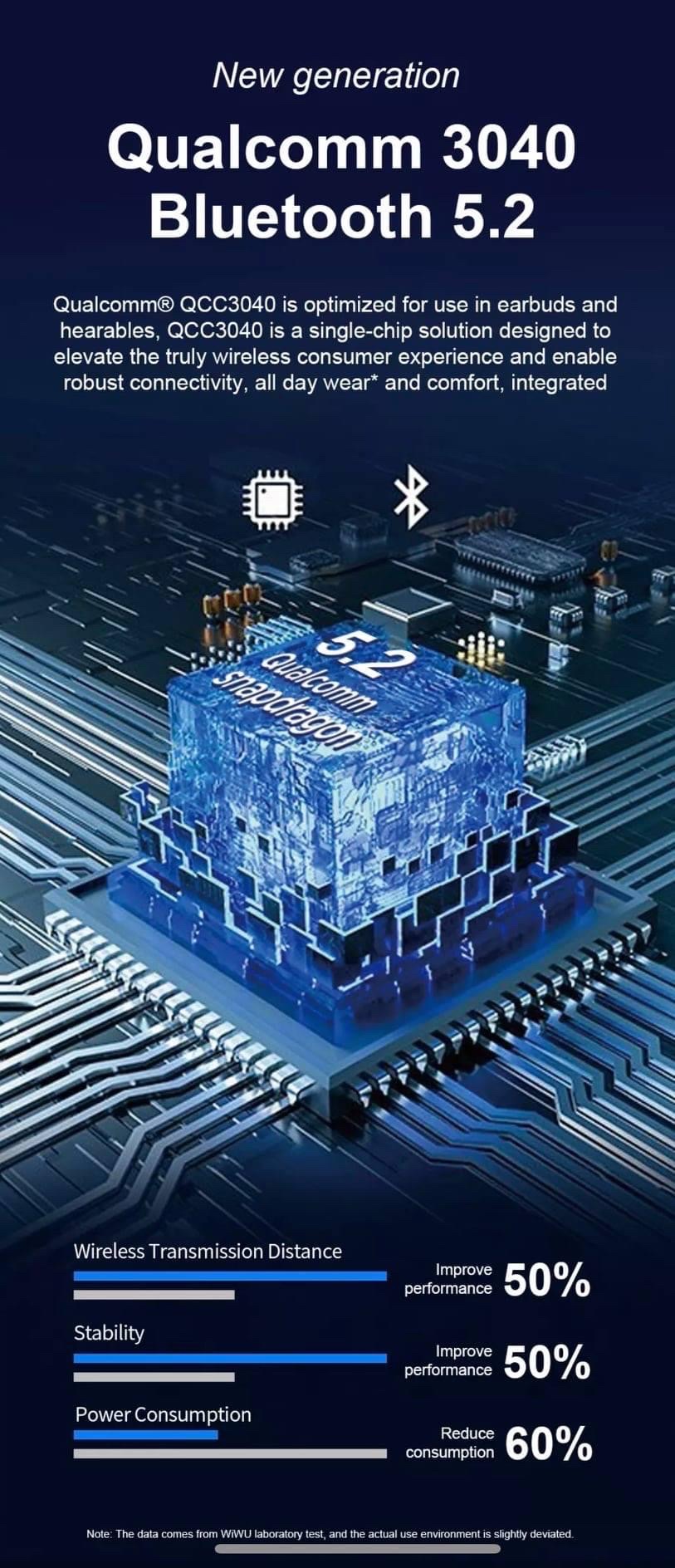 Tai nghe Bluetooth WiWu Shadow HY-3040 1. Thương hiệu: WiWu 2. Mô tả sản phẩm - Tai nghe thế hệ mới 5.2 được tối ưu hóa để sử dụng trong tai nghe nhét tai và