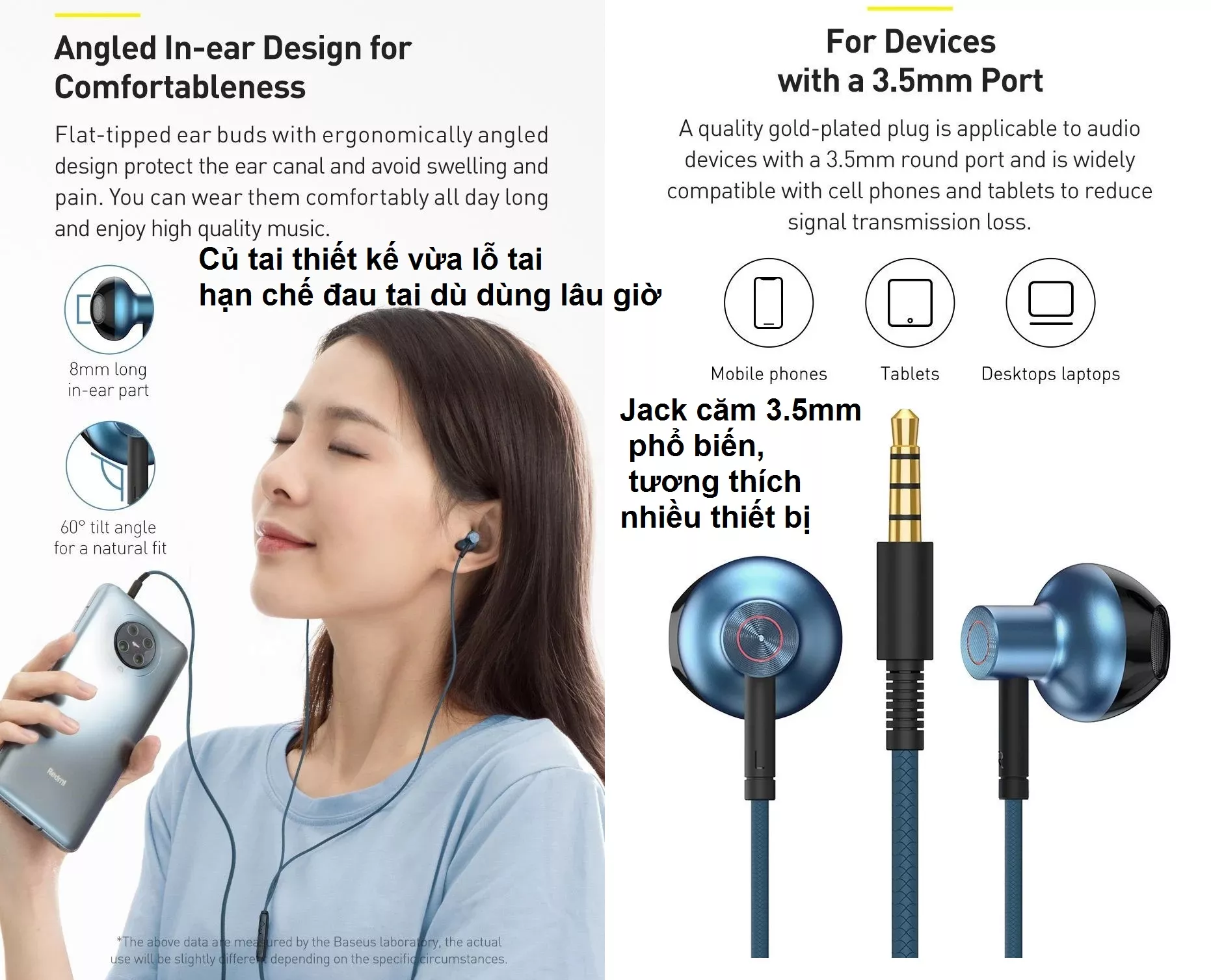 Mua tại TiktokTÍNH NĂNG CƠ BẢN TAI NGHE AUX 3.5MM BASEUS ENCOK H19 WIRED EARPHONE