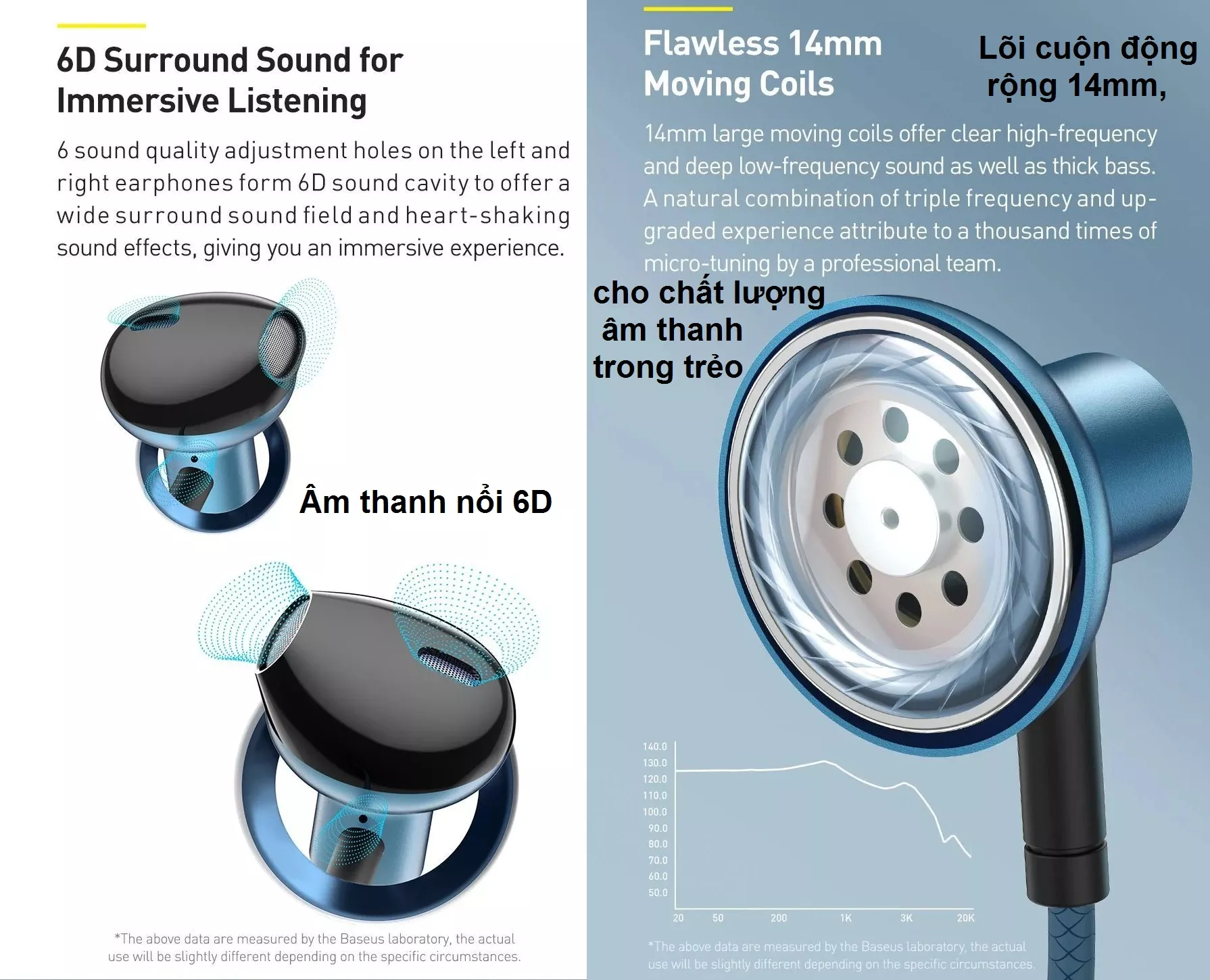 Sản phẩm tai nghe có dây Baseus Encok H06 - Hỗ trợ hiệu ứng âm thanh vòm 8D với 8 lõi âm thanh nổi - Bộ dây 14.2mm cho âm thanh tự nhiền với những