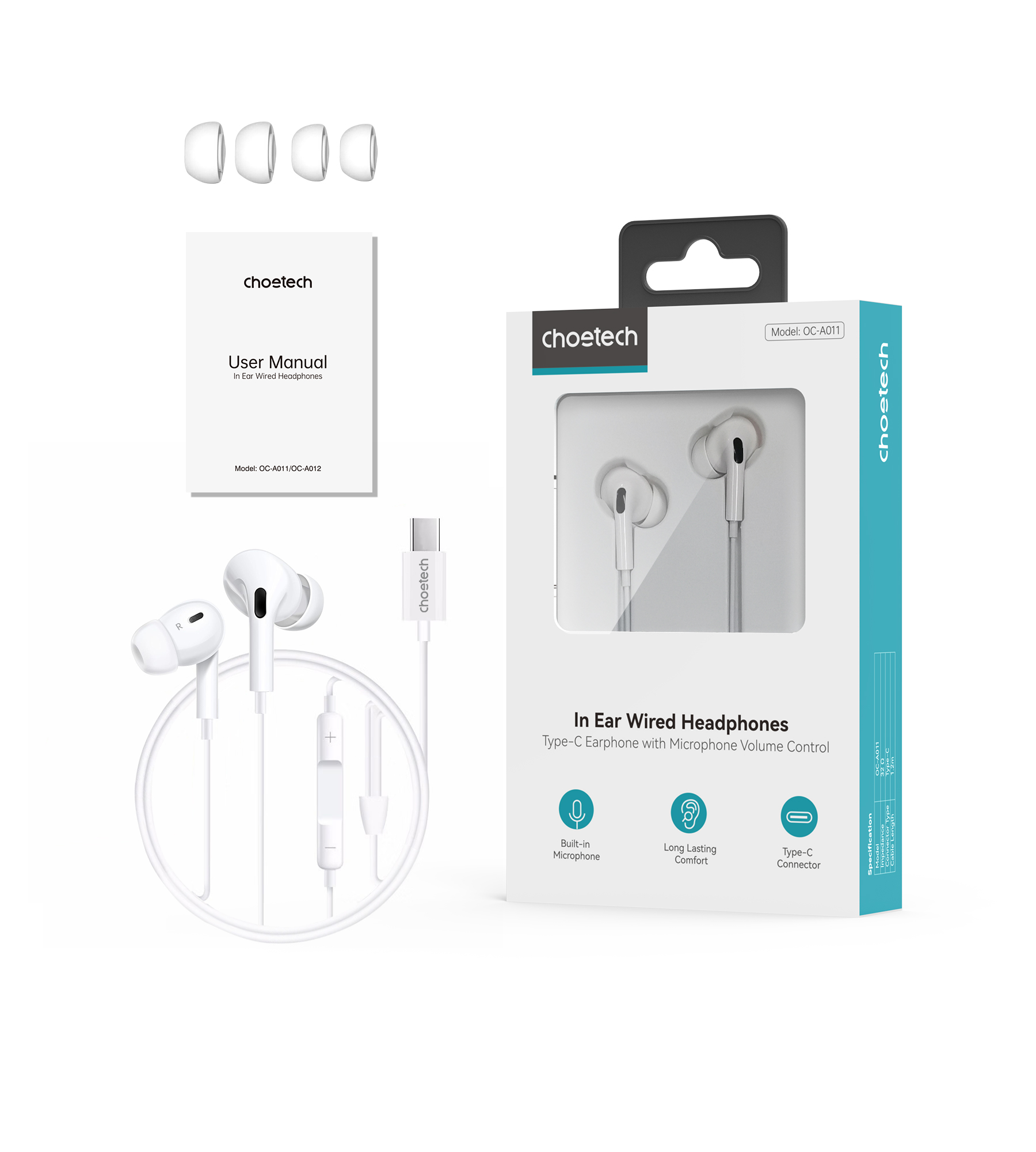Mua tại TiktokGiới thiệu Tai nghe Choetech OC-A011 dây nhét tai Type C có đệm cao su (Hàng chính hãng)