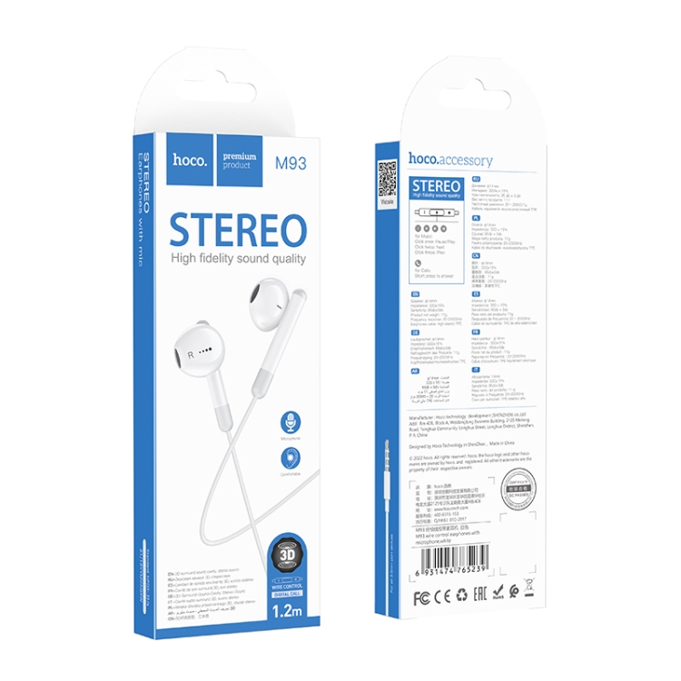 - Chiếc tai nghe in-ear Hoco M93 được trau chuốt kỹ lưỡng về mặt thiết kế. Chiều dài dây 1.2m đảm bảo tính linh hoạt và cơ động,cho phép bạn đem theo để thỏa sức nghe nhạc ở bất cứ đâu.