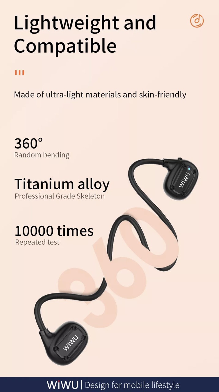 Mua tại TiktokTai nghe không dây thể thao Wiwu SE Thương hiệu: Mô tả sản phẩm Dung lượng pin: 100mAh Thời gian làm việc : khoảng 6 giờ , tiêu thụ điện năng thấp Tai nghe chỉ nặng 13g nhẹ và tương thích. Làm bằng vật liệu siêu nhẹ và thân thiện với da Uốn cong ngẫu nhiên 360 độ. Hợp kim titan, bộ xương hạng chuyên nghiệp thử thách kiểm tra lặp lại 10000 lần Công nghệ Bluetooth 5.0 mang đến chất lượng âm thanh cao Phần tử cảm biến điện dung tích hợp độ nhạy cao Thời gian sạc: khoảng 1,5 giờ Thời gian trò chuyện: khoảng 720 giờ Cổng sạc: Type-C Khoảng cách truyền: 10m
