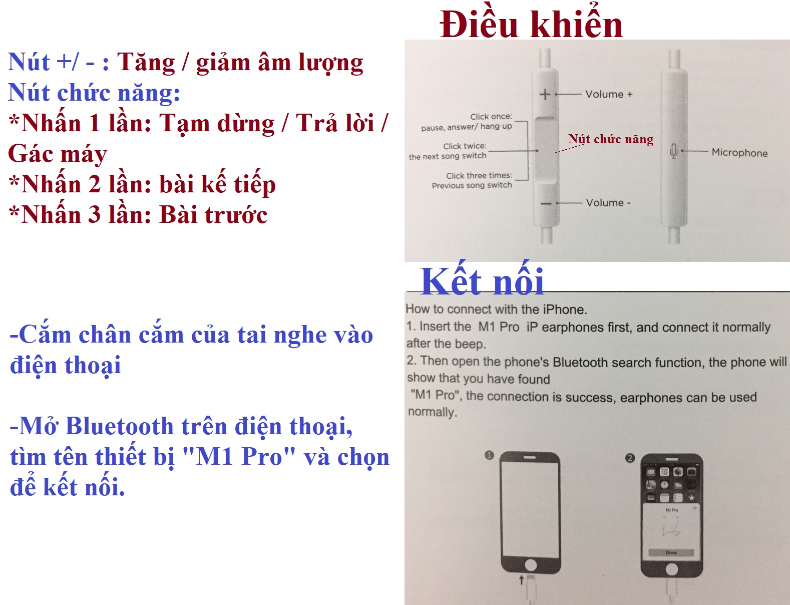 ✨Tai nghe nhét tai có mic chân ip kết nối bluetooth cho điện thoại ip hoco M1 PRO _ Hàng chính hãng