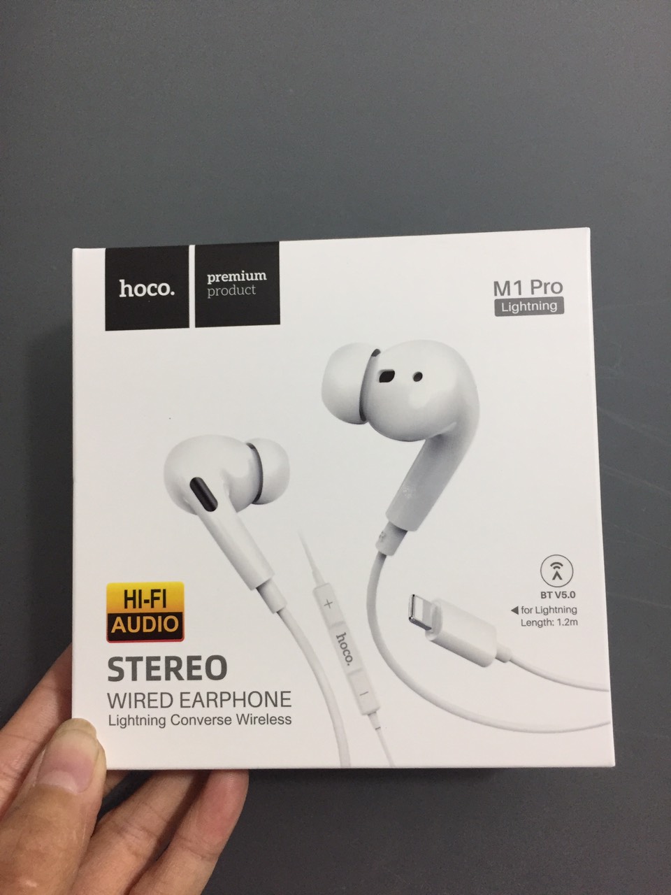 Mua tại TiktokTai nghe dây nét tai cho điện thoại iP thương hiệu hoco -Model: M1 Pro iP -Xuất xứ: Trung Quốc Mô tả: -Kết nối dây: iP -Kết nối không dây: Bluetooth V5.0 -Tích hợp mic -Điều khiển: Âm lượng, cuộc gọi, chuyển bài -Chiều dài dây: 1.2m
