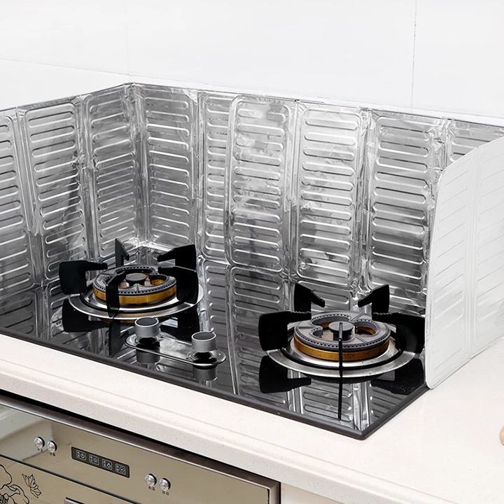 Miếng chắn dầu mỡ bếp ga bằng nhôm che gió nhà bếp dài 84cm cao 32cm chịu nhiệt chùi rửa tái sử dụng