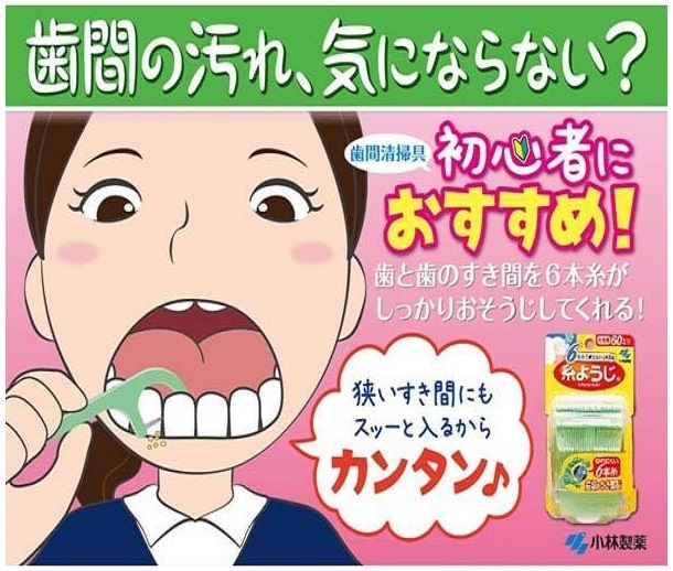 - Loại bỏ cặn thức ăn & mảng bám giữa các kẽ răng với tăm chỉ nha khoa Kobayashi Ito Yoji, rất khó để loại bỏ mảng bám giữa các kẽ răng chỉ bằng bàn chải đánh răng thông thường và có 1 tỷ mầm bệnh trong 1mg mảng bám, là nguyên nhân gây sâu răng và bệnh răng lợi. Điều quan trọng là phải loại bỏ mảng bám này một cách chắc chắn để ngăn ngừa sâu răng và bệnh nha chu.