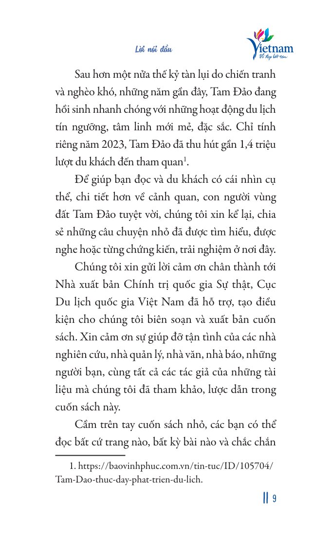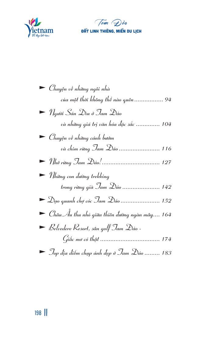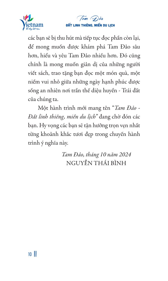 Mua tại TiktokTác giả Nguyễn Thái Bình & Phạm Hoàng Hải tiếp tục chinh phục độc giả đam mê du lịch bằng cuốn sách “Tam Đảo - Đất linh thiêng miền du lịch” Đây là cuốn sách thứ 3 sau Sapa và Hội An đã được ra mắt vào tháng 8/2024 Nếu bạn đã từng ấn tượng với một Sapa hiện đại nhưng vẫn giữ được vẻ yên bình giữa ngút ngàn xanh thắm của rừng già, của những nếp ruộng bậc thang hay một bức tranh lịch sử hay trải nghiệm văn hoá về một đô thị cổ xinh đẹp Hội An thì giờ đây tác giả sẽ đưa bạn khám phá Tam Đảo, một vùng đất linh thiêng ẩn chứa nhiều dấu tích lịch sử.