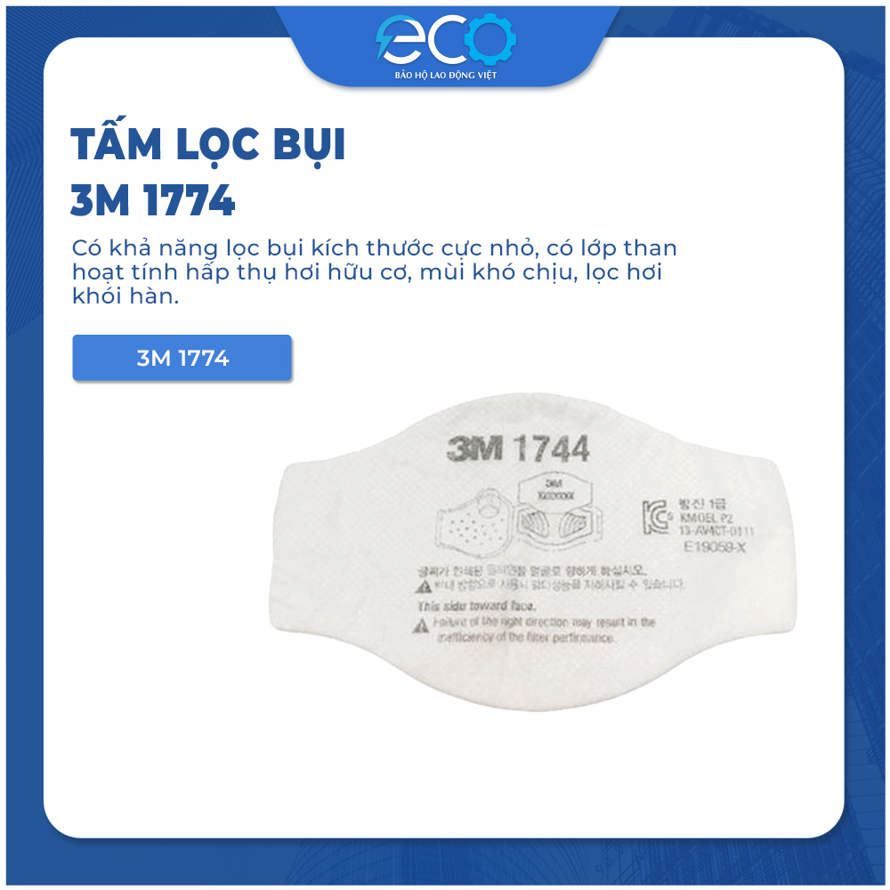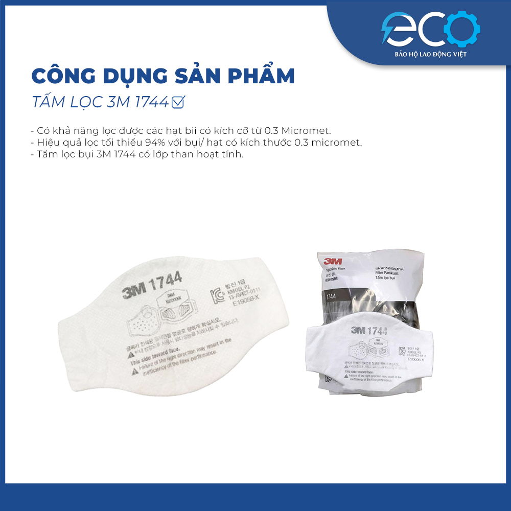 Tấm lọc bụi 3M 1744 được trang bị lớp than hoạt tính, được thiết kế phù hợp cho việc sử dụng cùng các mặt nạ nửa mặt với một phin lọc trong dòng sản phẩm
