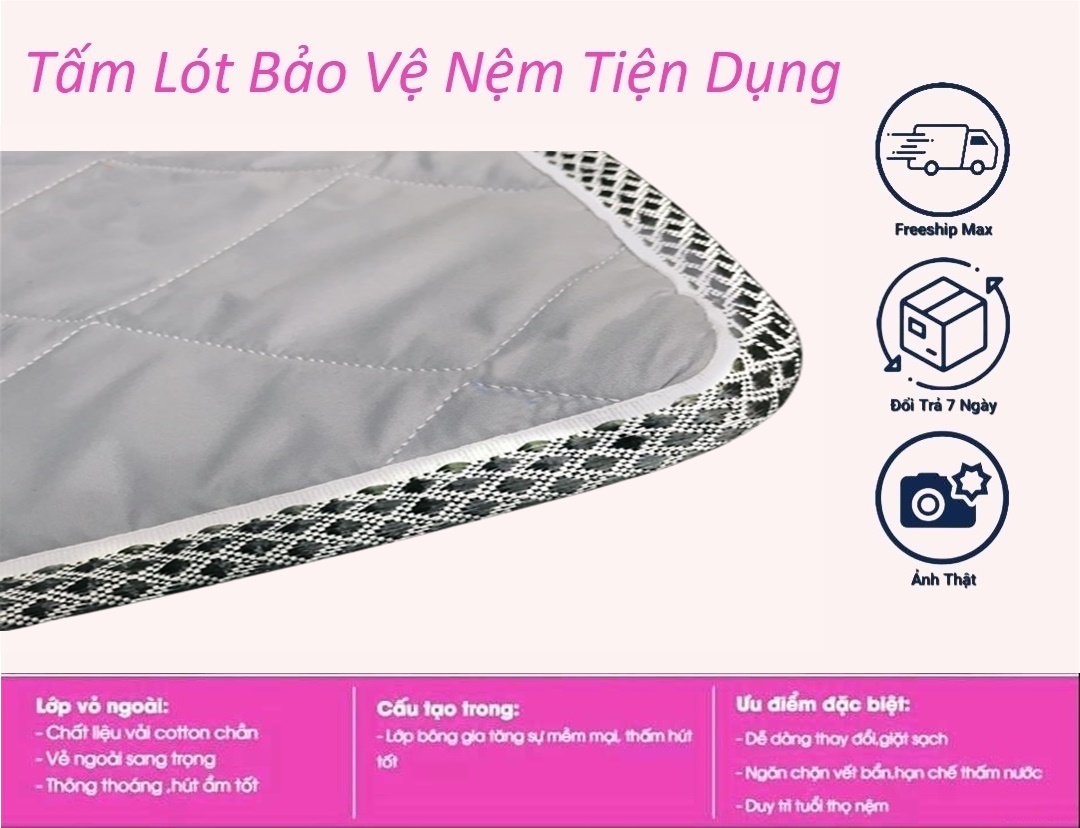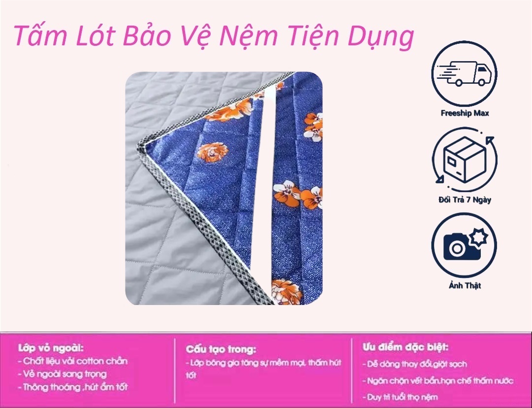Dùng như tấm làm mềm nệm để bảo vệ tấm nệm hoặc trải sàn, mang theo làm nệm ngủ văn phòng đều được CHẤT LIỆU ---------------------------- - Lớp ngoài: Sử dụng vải Cotton Poly thông