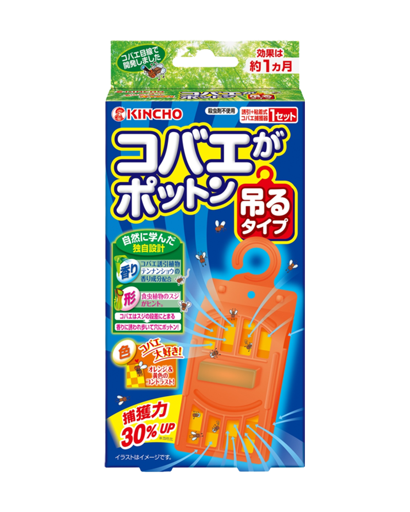 - Bóc bỏ lớp giấy ở bề mặt tấm dính và đặt tấm dính vào khung treo. 4: Đóng khung treo và treo hoặc đặt ở nơi cần bẫy ruồi (bồn rửa, nhà bếp, quanh thùng rác, cửa ra vào,). Tham khảo thêm hình ảnh minh họa hướng dẫn sử dụng ở mặt sau hộp giấy. LƯU Ý: Không sử dụng sản phẩm cho mục đích khác. Nếu chất dẫn dụ dính vào mắt, hãy rửa sạch bằng nước. Nếu keo dính dính vào da, tóc, quần áo, hãy lau sạch bằng dầu ăn, sau đó rửa sạch bằng xà phòng và nước. Vui lòng sử dụng sản phẩm ở nơi không tiếp xúc với nước hoặc mưa. BẢO QUẢN Bảo quản nơi khô ráo, thoáng mát. Tránh tiếp xúc ánh sáng trực tiếp hoặc nhiệt độ cao. Để xa tầm tay trẻ em. NHÀ SẢN XUẤT DAINIHON JOCHUGIKU Co.,Ltd. 1-4-11, Tosabori, Nishi-ku, Osaka 550-0001, Japan.