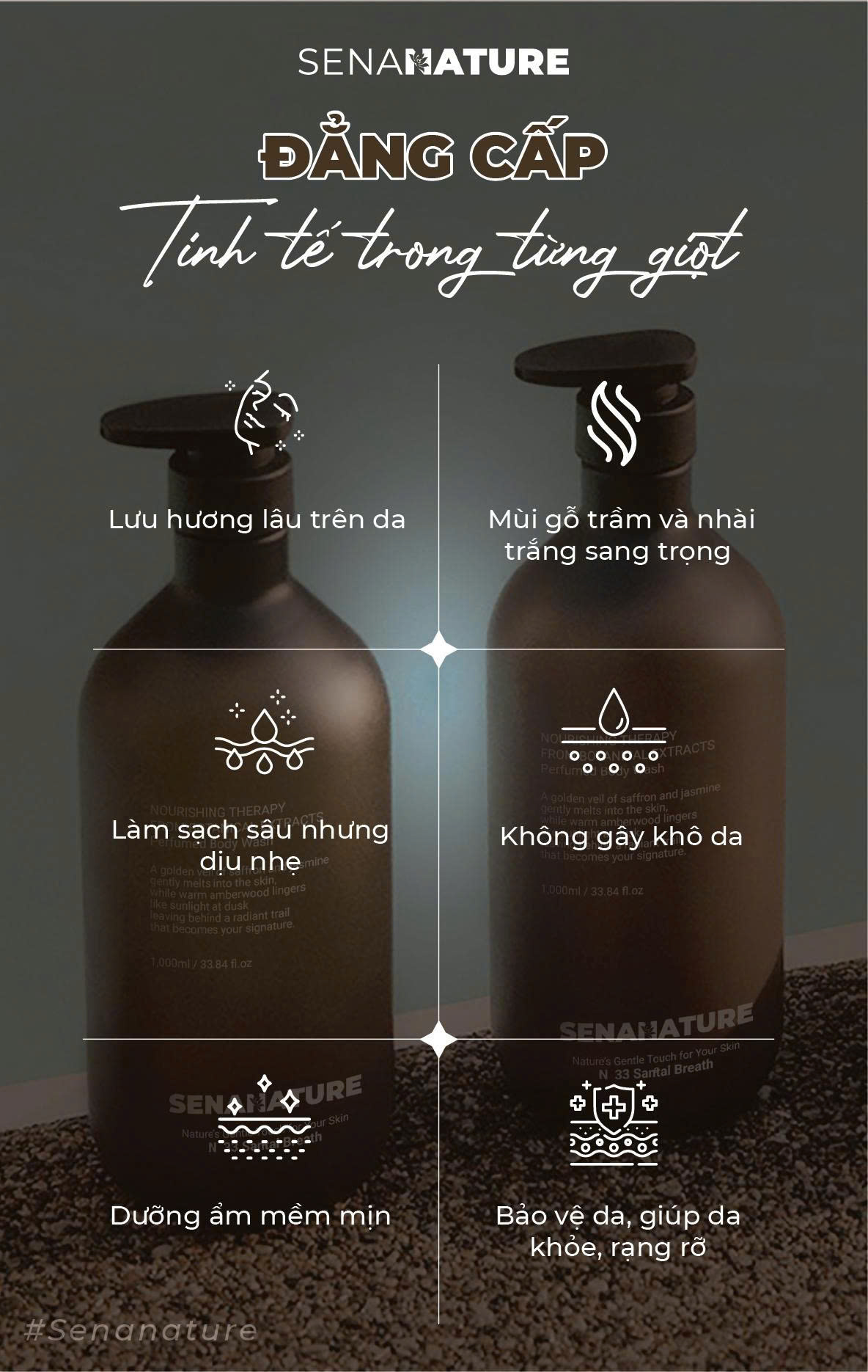 ✨(Tặng 3 nạ) Sữa tắm nước hoa SENANATURE NOURISHING THERAPY FROM BOTANICAL EXTRACTS Perfumed Body Wash 1000ml