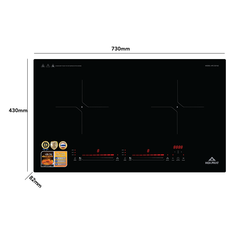 - Loại bếp: Bếp từ đôi - phù hợp với các loại nồi chảo có đáy nhiễm từ, đun nấu cực nhanh và an toàn cho người sử dụng, không trực tiếp tỏa ra nhiệt