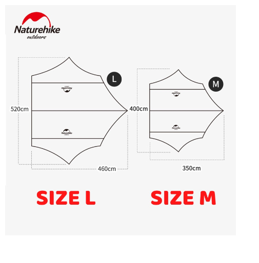 TĂNG DÃ NGOẠI PHỦ BẠC NATUREHIKE NH16T012-S/NH16T013-S THÔNG TIN SẢN PHẨM: - Thương hiệu: NatureHike - Mã sản phẩm: NH16T012-S/ NH16T013-S - Chất liệu: Oxford 150D phủ bạc - Kích thước & Trọng lượng: + Size M: Kích thước sử dụng 400cm x 350cm; Kích thước gấp gọn 621213cm; Trọng lượng 2.8kg + Size L: Kích thước sử dụng 520460cm; Kích thước gấp gọn 701315cm; Trọng lượng 3.4kg - Màu sắc: Xanh xám - Bộ gồm mái che, 02 cột chống, phụ kiện dây, cọc lều - Ưu điểm: Gọn, Nhẹ, dễ sử dụng - Phù hợp với các chuyến đi dã ngoại gia đình