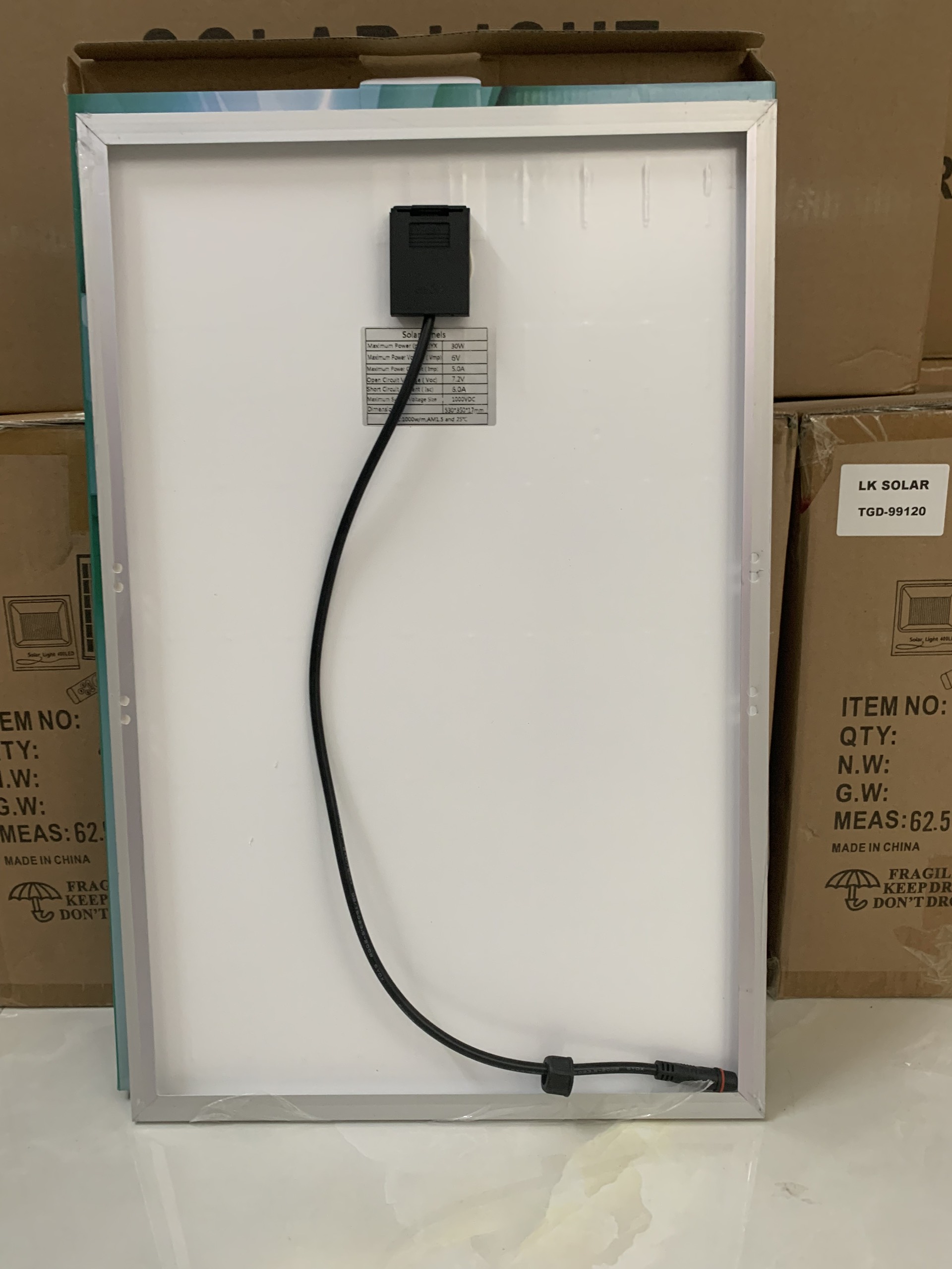 - Cấu tạo tấm pin mặt trời: Kính cường lực & Khung nhôm Kích thước: 530x350x17mm