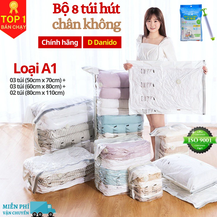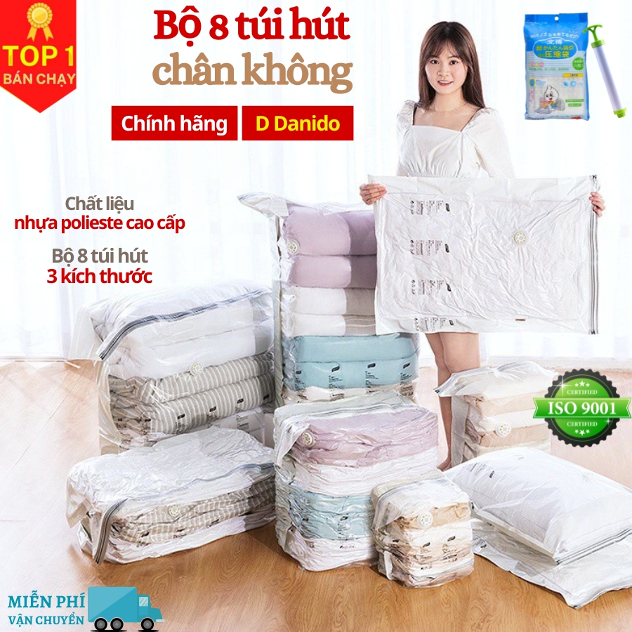 Mua tại TiktokBộ 8 túi hút chân không đựng chăn màn quần áo cao cấp D Danido Set 8 túi hút chân không bằng nhựa dẻo dai [Tặng kèm bơm tay]