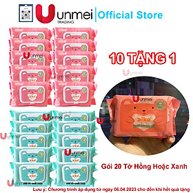✨[Tặng Kèm Giá Siêu Rẻ] Combo 10 Gói Khăn Ướt Aiko Kháng Khuẩn Xanh/Khăn Ướt Không Mùi Hồng 100 tờ/gói