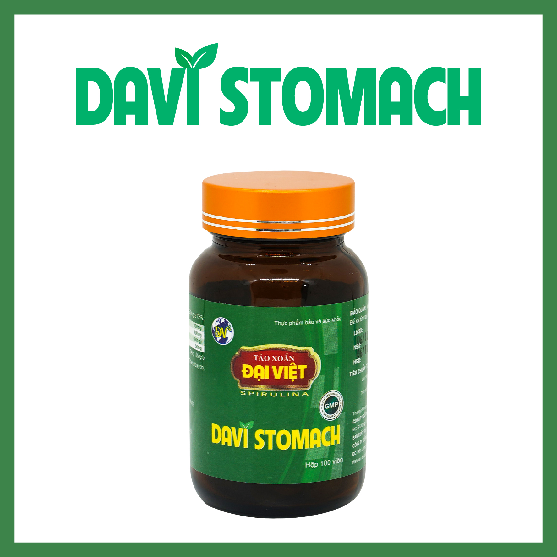 ✨Tảo xoắn Đại Việt Thực phẩm bảo vệ sức khỏe Davi Stomach Viên uống Spirulina cao cấp Hỗ trợ bảo vệ niêm mạc dạ dày DV28