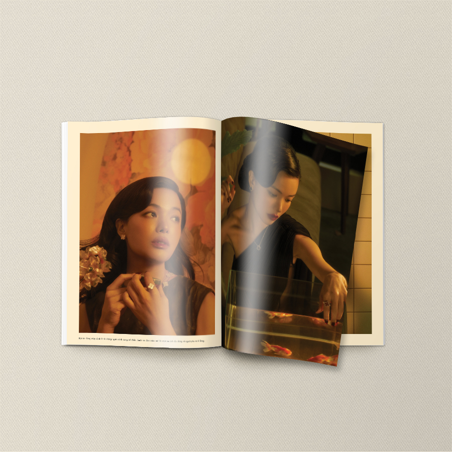 Số báo này mở ra bằng hình ảnh ca sĩ Chi Pu khoác lên mình những tuyệt phẩm từ Chaumet. Vẻ đẹp của cô không chỉ đến từ trang sức mà còn từ ánh nhìn của một người phụ nữ hiện đại: tự tin, bản lĩnh và không ngừng tái định nghĩa sự lấp lánh của riêng mình.
