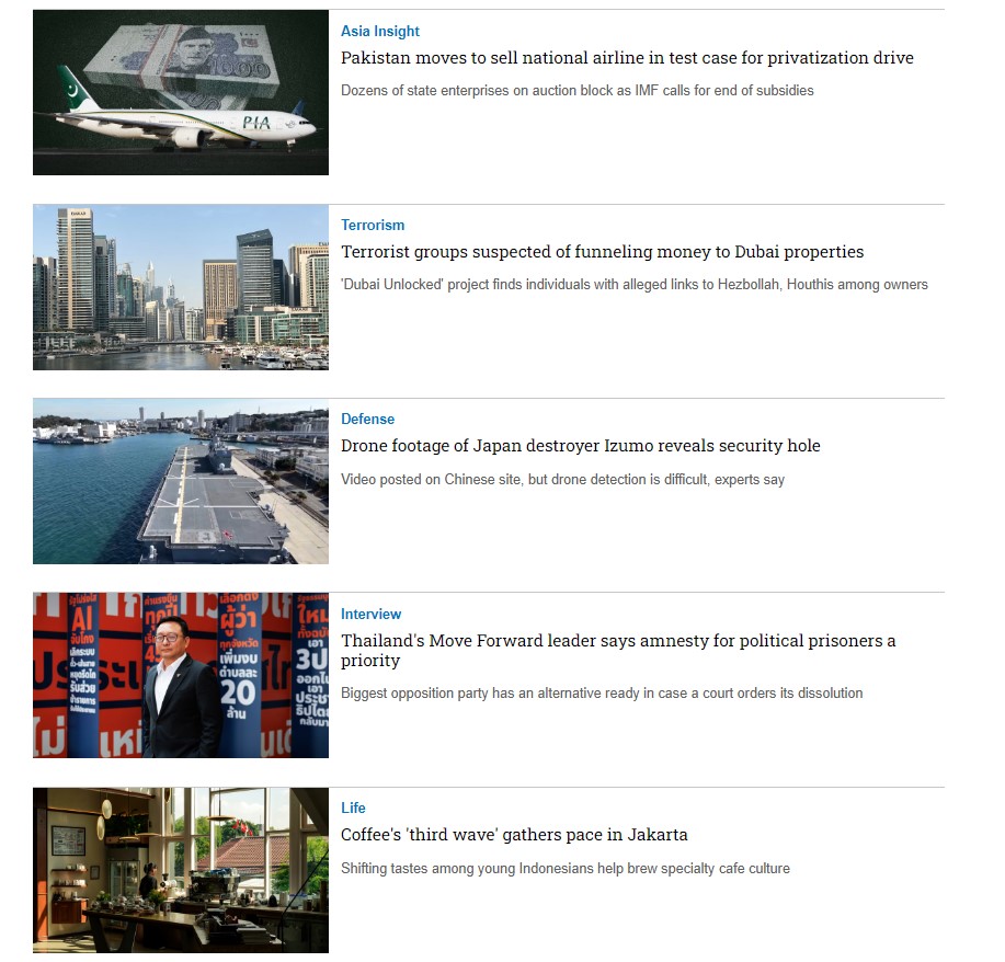 Nikkei Asia là tạp chí bằng tiếng Anh rất uy tín của Nikkei - Nhật Bản, chuyên viết về Xu hướng khu vực châu Á - Thái Bình Dương, Kinh tế, Công nghệ, Chính trị,
