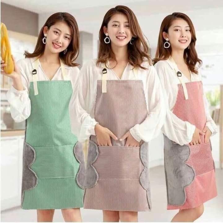 -Tạp dề nấu ăn , họa tiết cao cấp có khăn lau tay bên hông ,chống thấm nước cao cấp tiện lợi cho chị em - Xuất xứ : Việt Nam - Kích thước :72