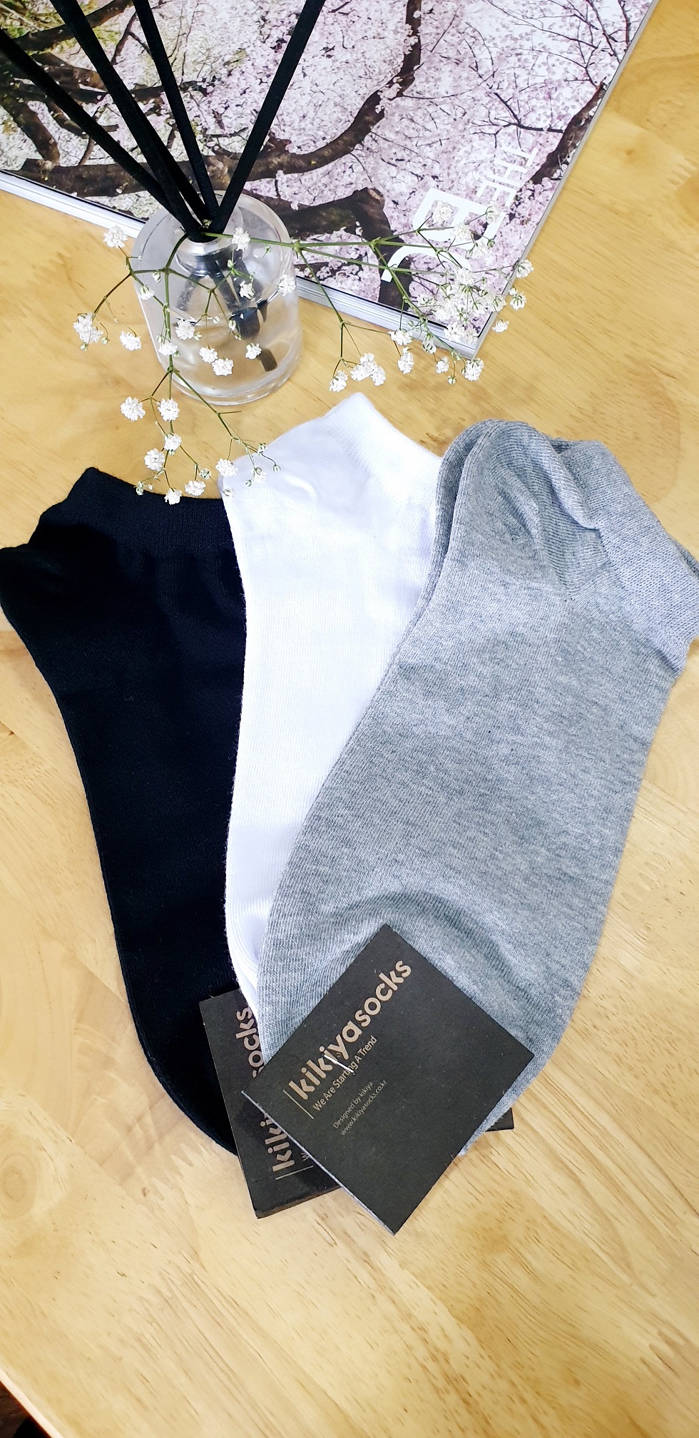 ✨Tất vớ nam trơn cotton cổ ngắn Kikiya cao cấp Hàn Quốc M-A-001