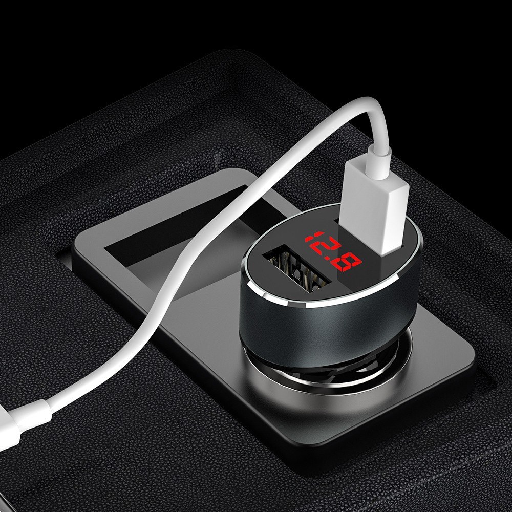 Tẩu Sạc Xe Ô Tô Có Màn Hình Led Hiển Thị - Công dụng: hai cổng sạc USB có thể sạc 2 thiết bị cùng 1 lúc, hỗ trợ tất cả thiết bị đầu